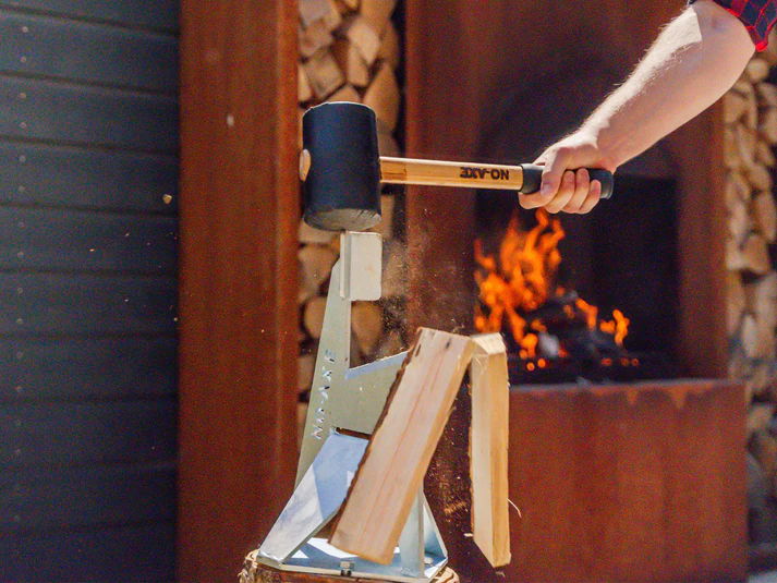 De NO-AXE Houtklover is specifiek bedoeld voor het kloven van aanmaakhout. Met de meegeleverde massief rubberen hamer kan in 1 tot 2 slagen aanmaakhout worden geproduceerd.