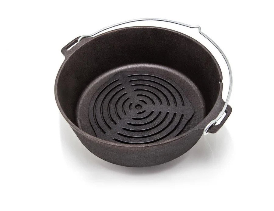 Met de compacte diameter van 23 cm past deze onderzetter onder diverse petromax-potten. De pootjes tillen de pan waardoor luchtcirculatie ontstaat en hitte-overdracht beter beheersbaar is. De veelzijdige Petromax gietijzeren onderzetter 23 cm kan ook als grillrooster fungeren: leg ‘m direct in het vuur en grill vis, groenten of steaks. Combineer hem met een Petromax Dutch Oven voor volledige buitenkookfunctionaliteit.