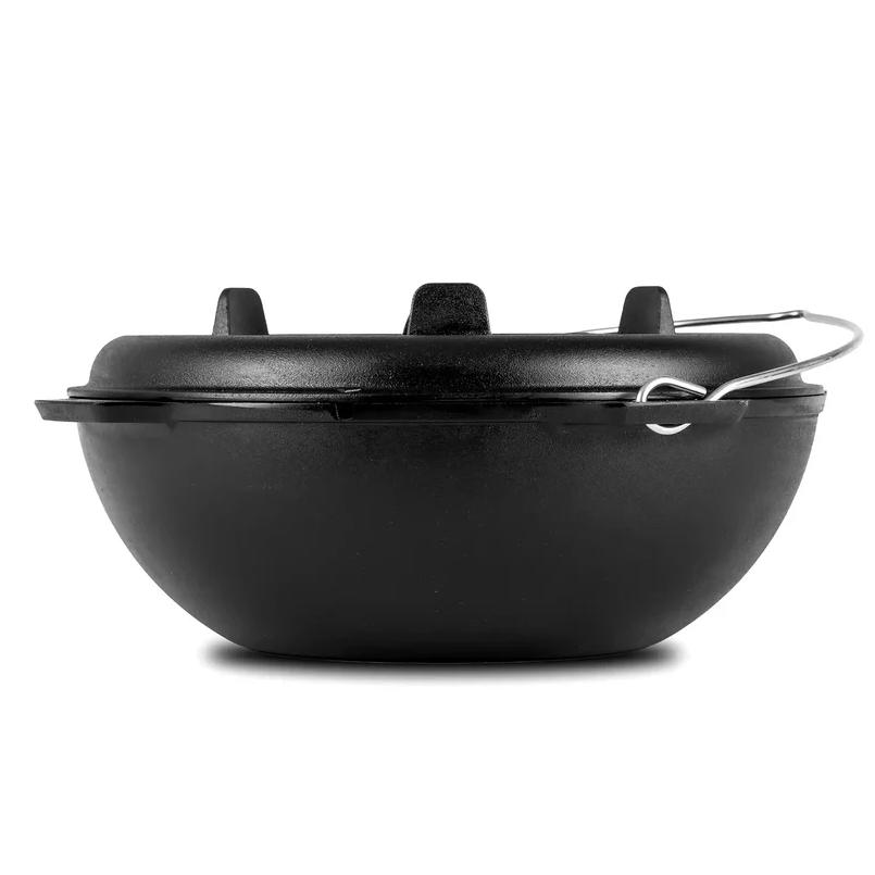 De Petromax Kazan 8 liter is dé gietijzeren pan voor liefhebbers van stoofschotels, soepen en slow cooking. Dankzij de ronde vorm en sterke wanden verdeelt de pan warmte gelijkmatig, zodat je gerechten altijd perfect garen. Deze robuuste Petromax Kazan 8 liter is ideaal voor buitenkoken boven open vuur of met houtskool. Combineer hem voor het ultieme gemak met de Petromax vuurschaal.