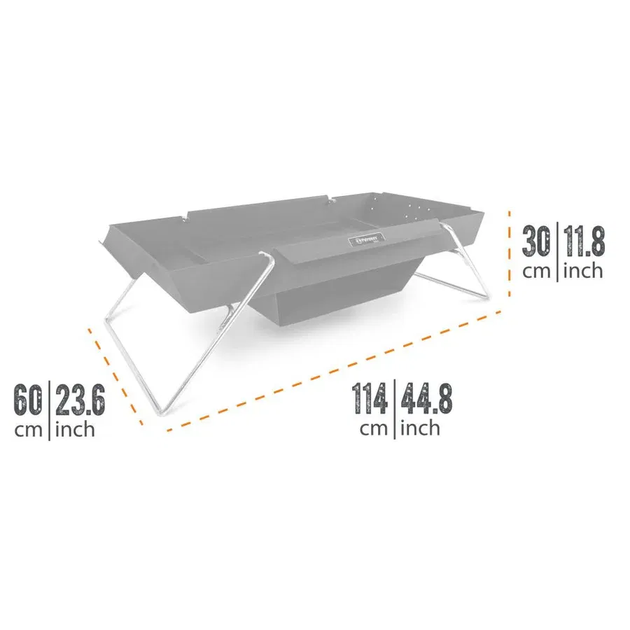 De Petromax Vuurtrog is een ruime vuurplaats die perfect is voor een kampvuur om bijvoorbeeld buiten op te koken met een Petromax Dutch Oven of Skillet! De grote Petromax Vuurtrog van 114 x 60 x 30 cm heeft een stevige constructie. Daarom maakt deze vuurplaats het ideaal om gerechten te garen, koken en warm te houden. Ook is het natuurlijk gewoon een veilige plaats voor een kampvuur. Gebruik de Petromax Vuurtrog in combinatie met de Petromax Fire Bridge om dé ideale set-up te maken voor een middag of avond buiten koken!