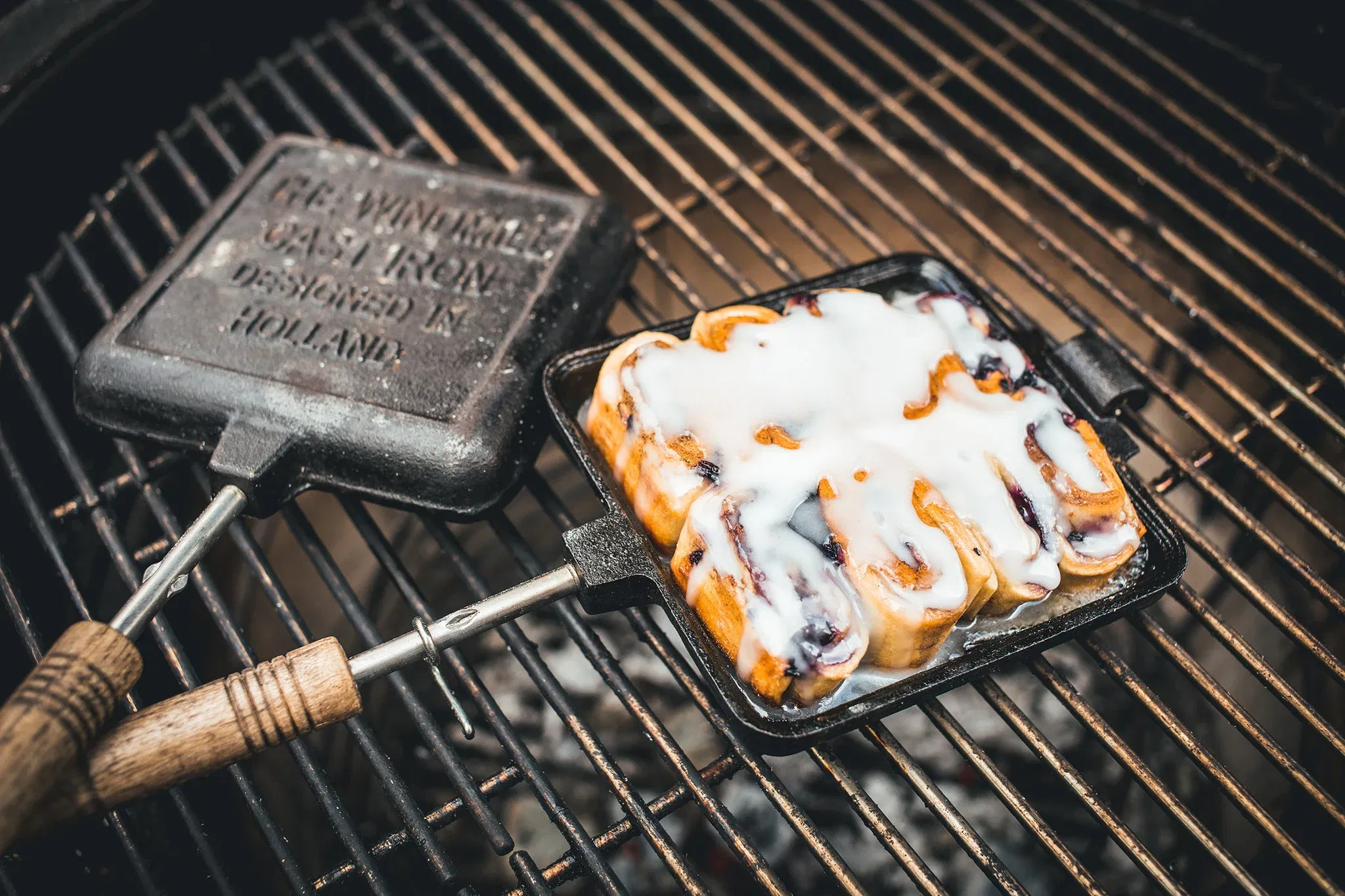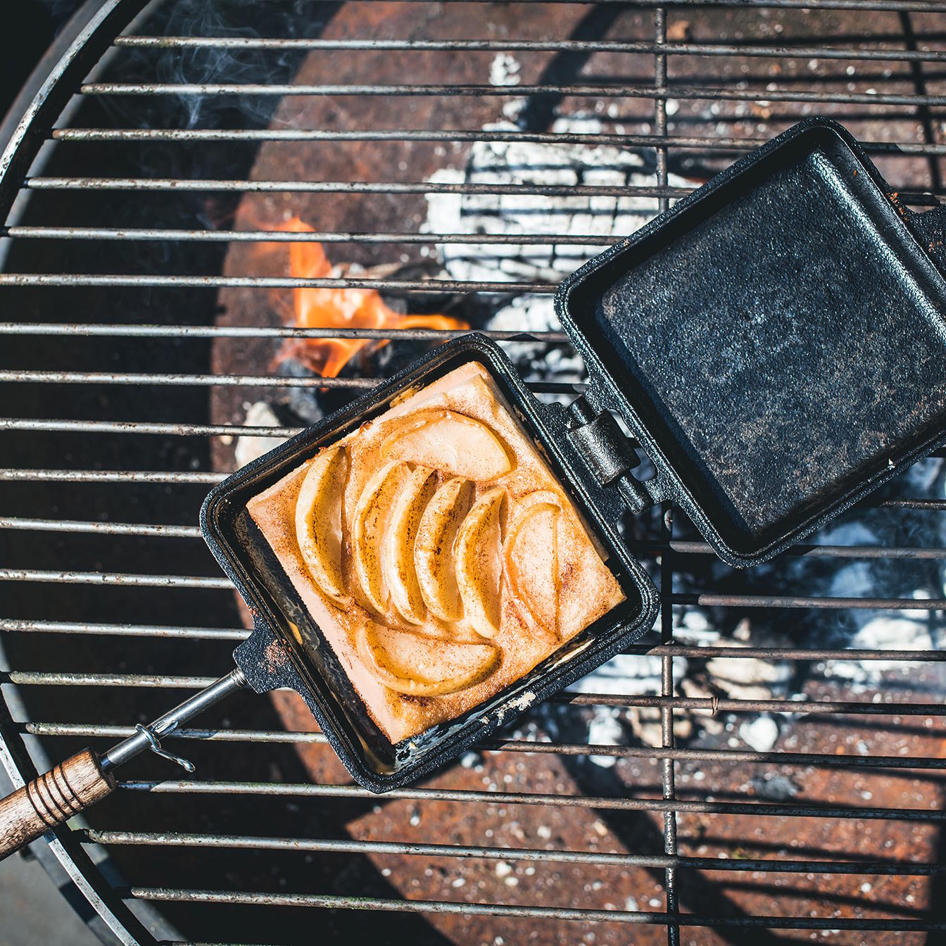 Bak je favoriete tosti’s waar je ook bent met het The Windmill tosti-ijzer, ideaal voor kampvuur of BBQ. Gemaakt van gietijzer, voorzien van extra lange RVS stelen met houten handvatten voor veilige grip én afstand tot de hitte. Het ijzer is voorbehandeld (pre-seasoned) zodat je meteen aan de slag kunt. Dankzij deze combinatie draait het ijzer snel warmte rond je brood en zorgt het voor knapperige, goudbruine sandwiches.