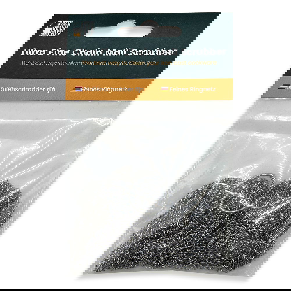 Met de Ultra Fine Chain Mail Scrubber van DutchOvenChef reinig je alle hoeken en randjes van gietijzeren pannen. De fijnmazige ringen zijn ontworpen om hardnekkige etensresten te verwijderen uit gietijzeren pannen. Dit scrubmatje is ideaal voor zelfs de allerkleinste pannen, omdat de kleine fijnmazige ringetjes nagenoeg overal bijkomen en schoonmaken.